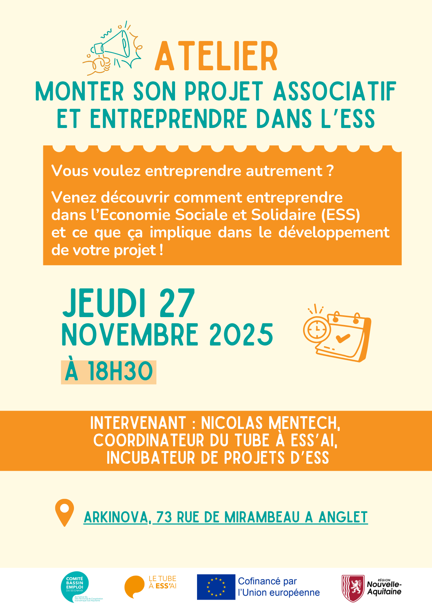 Le jeudi 27 novembre 2025, le Tube a ESS’ai animera un atelier « Monter son projet associatif, comment entreprendre dans l’ESS » pour les étudiants entrepreneurs du dispositif PEPITE de l’Université Pau…